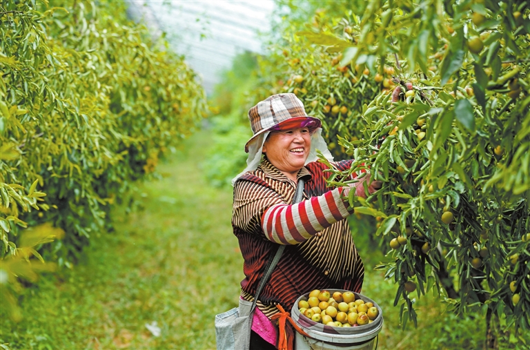 9月10日,在襄汾县邓庄镇席村300余亩冬枣种植基地,种植户对大棚冬枣开展采收作业。白露过后,该基地内一颗颗硕大饱满的冬枣挂满枝头、长势喜人,当地种植户忙着进行采收、分拣、装箱、销售等系列作业,一派忙碌的丰收景象。