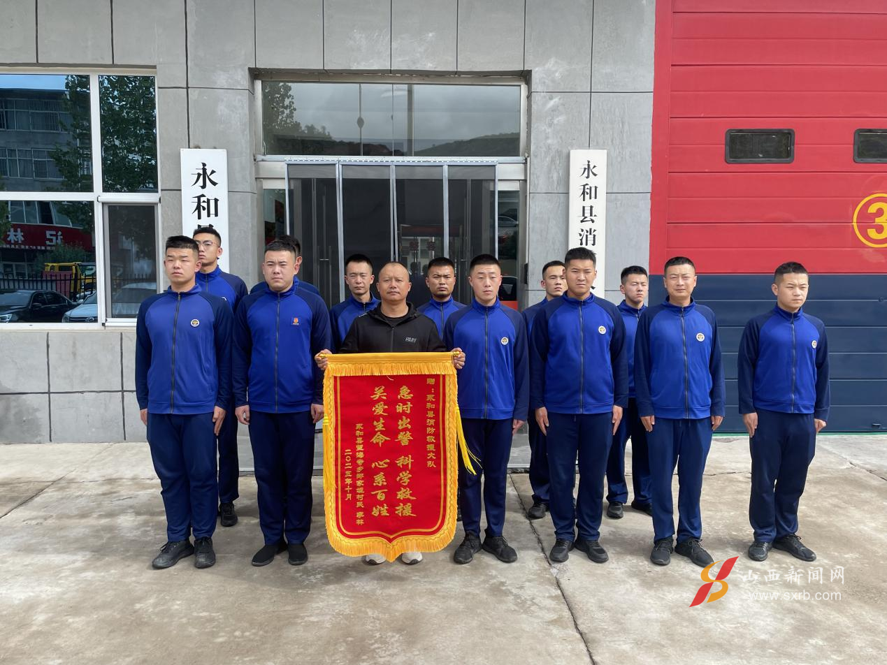 9月17日,永和县消防救援大队院内,该县望海寺打石腰乡郑家垣村村民李林把一面书写着“急时出警,科学救援;关爱生命,心系百姓”的锦旗送到了消防队员的手里,感谢他们在危急时刻救助自己的母亲于危难之中。
