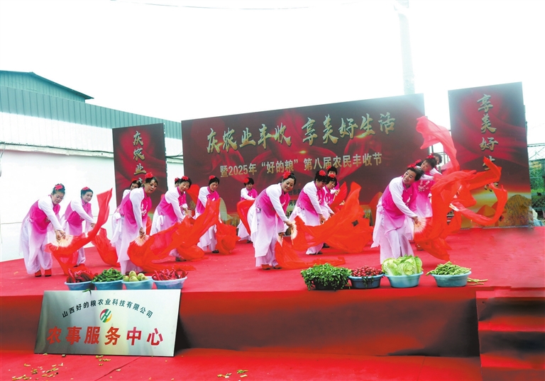 此次活动由尧都区农业农村局举办,尧都区汾河街道办事处承办,山西好的粮农业科技有限公司协办。喜庆热闹的威风锣鼓拉开了“庆农业丰收·享美好生活”暨2025年“好的粮”第八届农民丰收节的序幕,来自运城及我市的锣鼓、舞蹈、音乐等团队,奉上了精彩的舞狮、扇子舞、歌伴舞等节目。活动现场,丰收的瓜果、蔬菜、玉米、杂粮等成了最美的点缀,“感恩大地致敬耕耘”“粮安大地丰收万家”“金秋晋地粮满仓好粮献礼丰收节”等标语和群众的欢声笑语交织成欢乐的海洋,处处洋溢着丰收的喜悦。