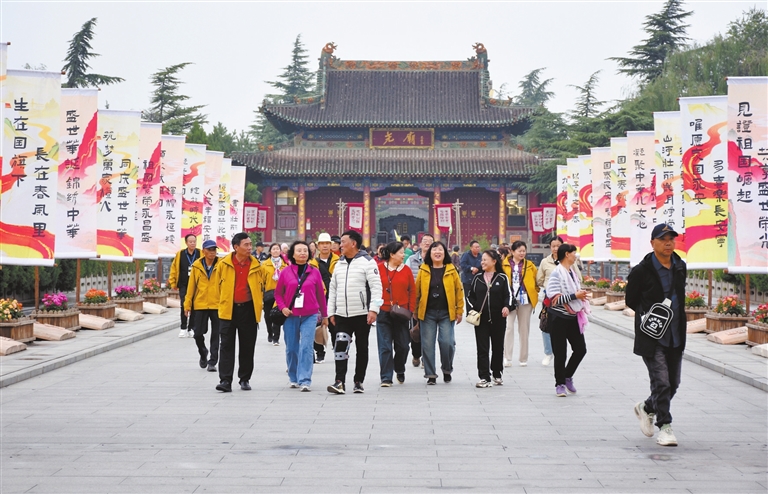 9月23日,游客在尧庙景区参观游览。我市2025年尧文化旅游节9月24日在尧都区、襄汾县、蒲县三地焕新启幕,尧庙、尧陵、陶寺遗址博物馆等处精心布置活动现场,营造出浓浓的节日氛围。