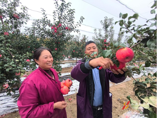 采访那天,我们漫步在“万亩垣”太德乡的土地上,厉学民的苹果园里,脚下松软的黄土、鼻尖萦绕的苹果清甜和风里都带着笑意——当看到王艳丽的指尖拂过苹果果皮,掌心老茧与果实鲜嫩的奇妙对比,就能想像到那纹路里藏着的坚韧,比苹果本身更动人。
