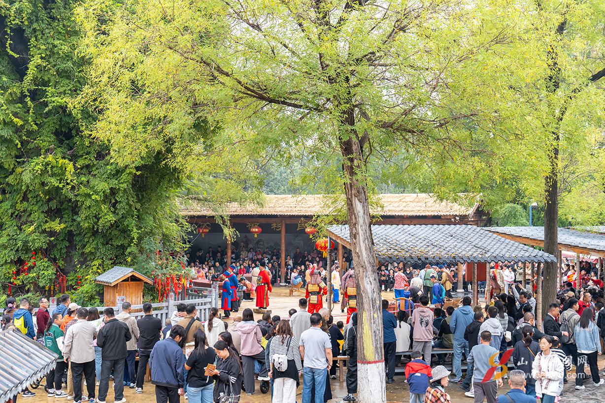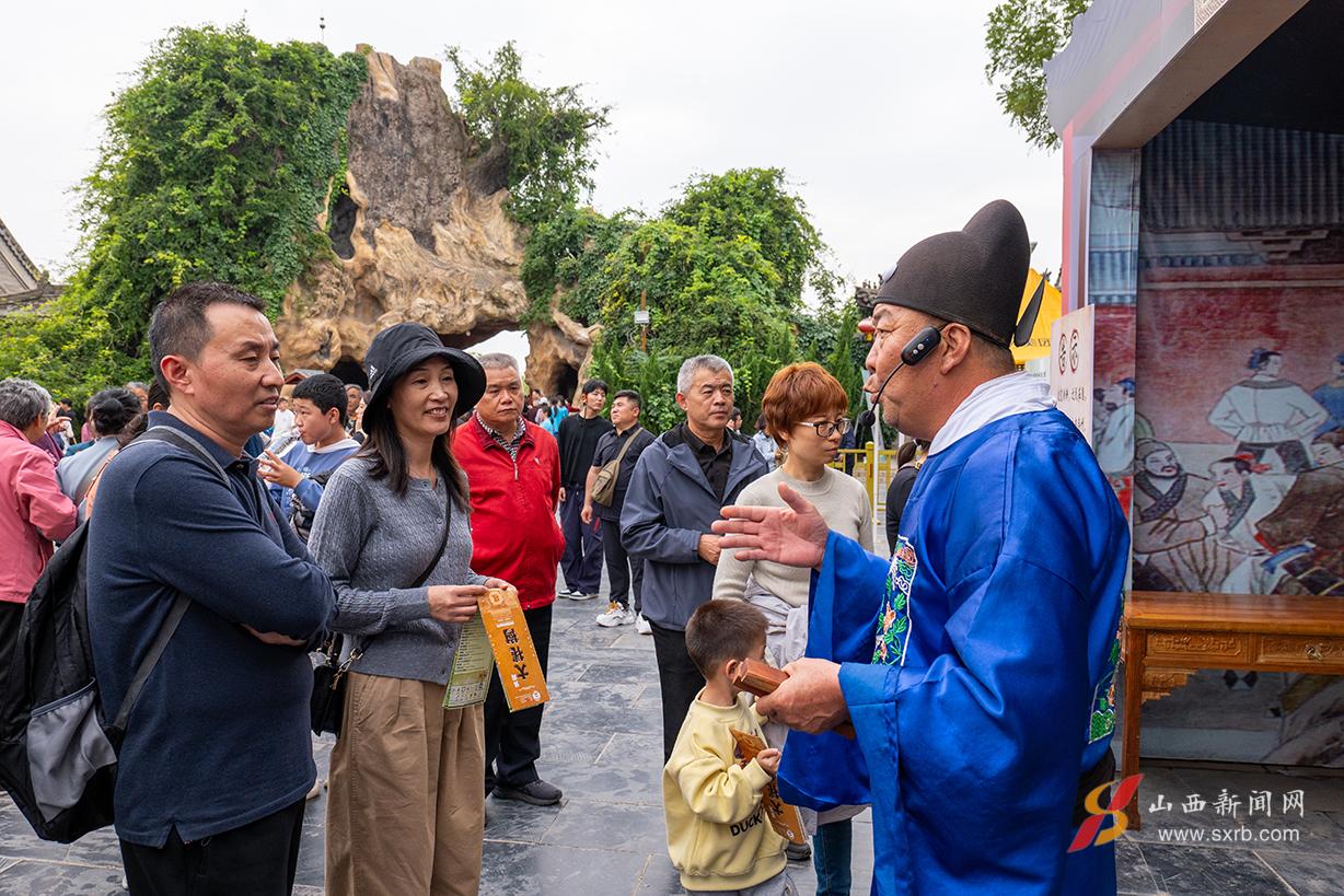 一大早,随着《开门迎亲》的欢快旋律在根雕大门前响起,景区的各项表演正式拉开了序幕。《大明迁民署》《守谱族长》等历史题材类NPC互动体验节目轮番上演,演员们身着古装,以精湛的演技再现明朝大移民中的一些生动场景,让游客仿佛穿越时空,亲身参与到那段波澜壮阔的历史岁月。《槐花教你说土话》通过轻松欢快的氛围,以老家姑娘槐花NPC的身份教给游客们洪洞家乡话,希望游客返程回家分享旅途趣闻时能够说上一说。