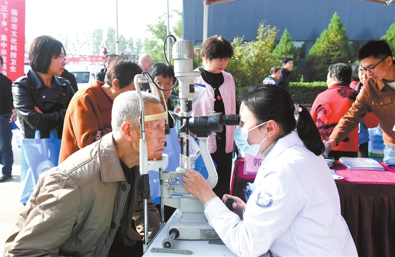 10月14日上午,我市2025年文化科技卫生“三下乡”集中示范活动在尧都区金殿镇小榆东村启动,来自文化、科技、卫生等方面的专家和志愿者,为当地群众提供了政策宣讲、科学普及、医疗义诊等服务,同时走村入户将文化产品、农业服务、法律知识送到农民群众身边。