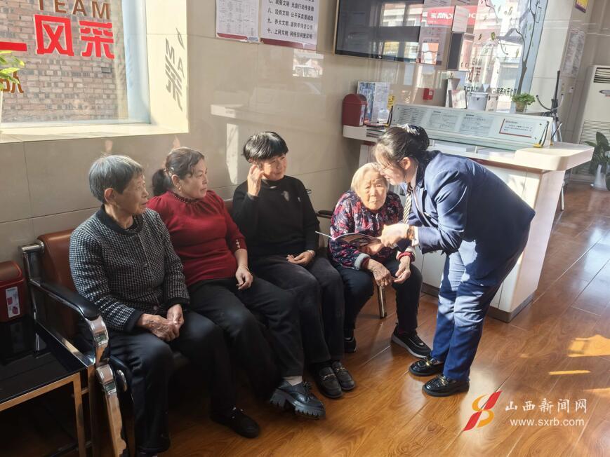 新城支行与太平支行将重阳暖意延伸至辖区养老院。工作人员帮助老人整理内务、擦拭环境,与老人促膝谈心,聆听往事,合唱老歌,欢声笑语驱散了老人们的孤独。同时,针对老年群体防范意识薄弱的特点,工作人员开展反诈宣传,结合“保健品骗局”“虚假投资陷阱”等真实案例,用通俗语言拆解诈骗套路,为老人筑起一道金融安全屏障。