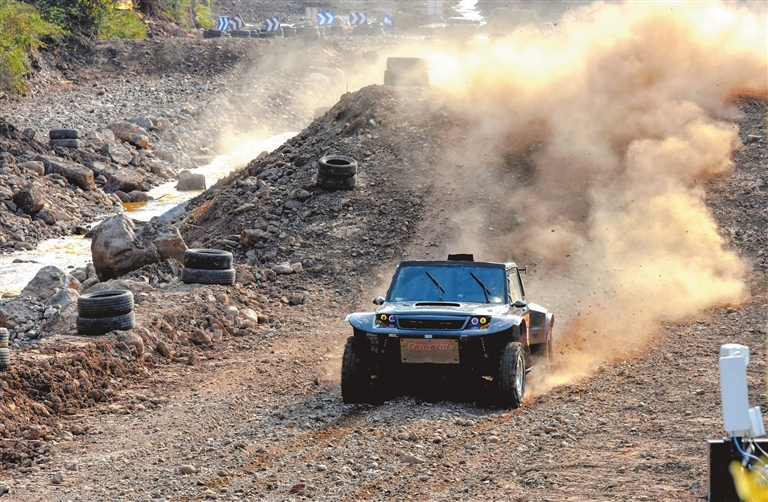 车轮碾过碎石路发出“咯吱”声响,卷起的尘土在山谷中弥漫成一道“黄色巨龙”。面对连续“S”型弯道,车手猛打方向盘,车身紧贴崖壁漂移而过,遇陡坡路段,引擎嘶吼着爆发出强劲动力,车身倾斜着向上攀爬,车轮溅起的碎石滚落谷底,回声在峡谷中久久回荡。