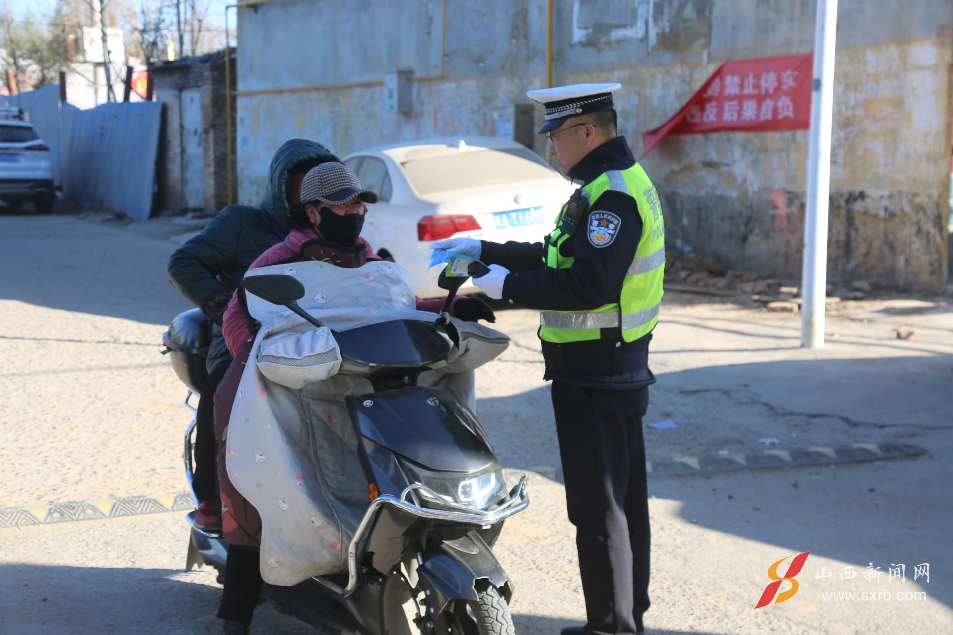 为进一步提升人民群众的交通安全意识和自我安全保护意识,有效预防和减少农村地区道路交通事故的发生,霍州市公安局交管大队二中队、综合科走进辖区靳壁村,开展冬季农村道路交通安全宣传活动。