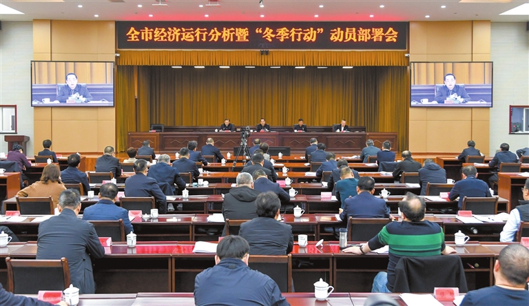 11月25日,我市召开经济运行分析暨“冬季行动”动员部署会,全面总结前三季度及10月份经济工作,分析研判当前经济形势,系统安排近期工作,重点对新一轮“冬季行动”进行动员部署。市委书记李云峰出席并讲话。他强调,要深入学习贯彻党的二十届四中全会精神和习近平总书记对山西工作的重要讲话重要指示精神,切实把思想和行动统一到省委决策部署和市委工作要求上来,不断增强执行力落实力,持续提高思想认识抓落实、锤炼过硬作风抓落实、坚持日拱一卒抓落实、用好制度机制抓落实,全力以赴推动各项工作争先进位、持续领跑,确保今年收好官、明年开好局。市委副书记、市长王延峰主持会议。市委副书记、政法委书记王渊宣读了《全市“冬季行动”工作方案》。市政协主席郝忠祥出席会议。