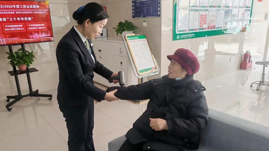 “阿姨,您平时带孙子辛苦了,我帮您用筋膜枪放松一下肩背。” “大叔,经常低头看手机对颈椎不好,这个按摩仪您试试看。” 营业大厅内,员工们化身“暖心使者”,手持专业按摩设备,为等候办理业务的客户提供免费理疗服务。一句句关切询问,一次次专业按摩,让原本普通的业务等候时间,变成了惬意的身心放松时刻。