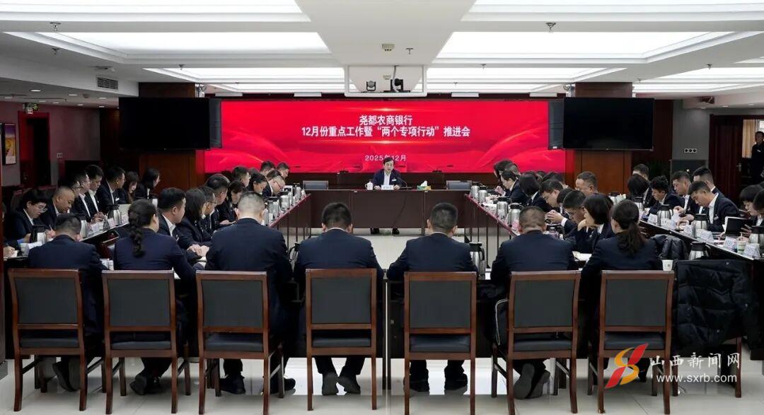 会议要求,要聚焦重点,全力攻坚,确保各项年度目标任务圆满完成。一要全力以赴冲刺收官,坚决完成全年经营指标。紧盯存款、贷款等关键发展类指标,严格兑现经营目标交账承诺,统筹抓好年终决算工作,确保财务数据真实、准确、完整反映经营成果。二要聚焦风险防控,全面提升资产质量与内控水平。强化源头管控,严格执行贷款“四查”机制,加强存量贷款监测预警;严格按照要求强化不良资产诉讼时效管理,多措并举提升处置质效,切实做到既去存量、更防增量。三要坚持全面从严治党,营造风清气正的发展环境。持续深化作风整治,坚决纠治不正之风,树立实干担当的鲜明导向;落实好“三个区分开来”,健全容错纠错机制,激发全员干事创业的积极性、主动性、创造性。四要筑牢安全防线,坚决保障稳健运营。牢固树立安全生产“三管三必须”要求,以“零容忍”的态度,全力筑牢安全防线;强化对消防安全、防盗安全、网络安全等重点领域的风险排查与整治;完善应急预案,加强演练,提升应急处置能力。