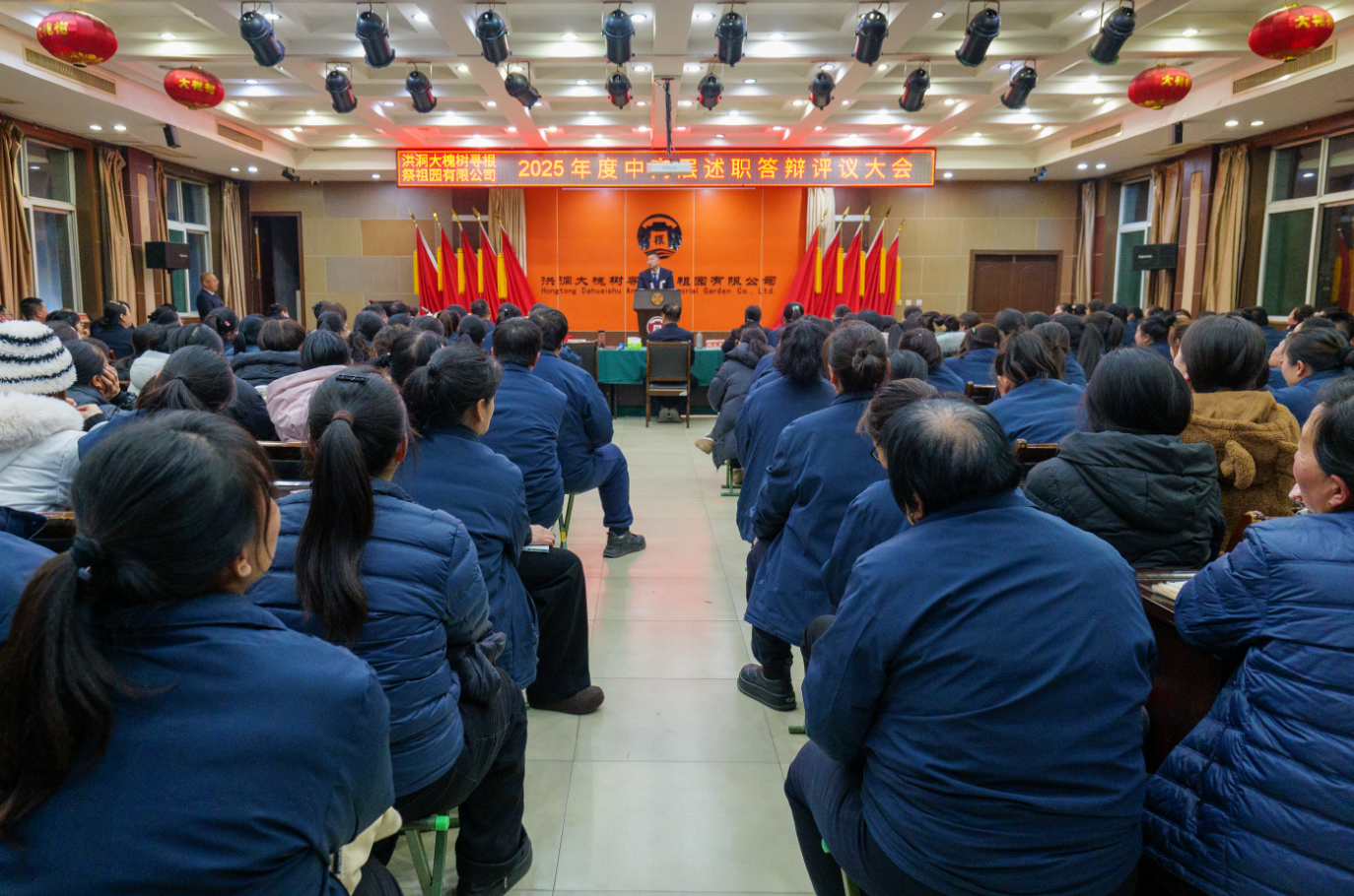 近日,洪洞大槐树寻根祭祖园有限公司组织召开2025年度中高层管理人员述职答辩评议大会。公司常务副总经理何东海主持会议,全体中高层管理者及员工代表共同参会。