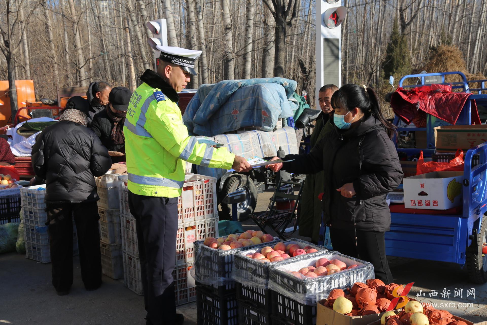为进一步做好农村交通事故预防工作,针对冬季农村地区特别是农贸集市交通安全风险增大的实际情况,12月25日,霍州公安交管大队二中队、综合科民警巧借农村“赶集日”,走进辖区大张村农贸赶集市场,积极开展“美丽乡村行”交通安全宣传活动。