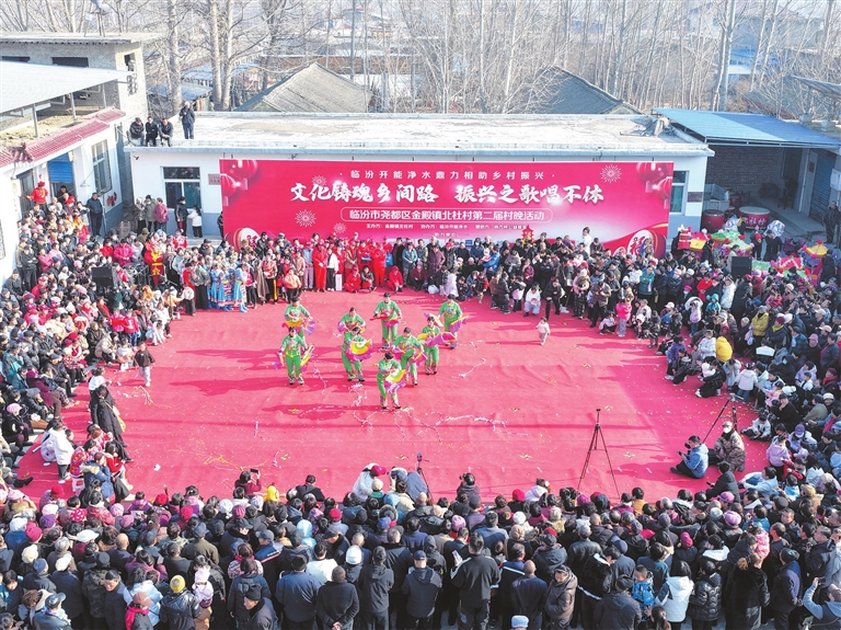 12月28日,尧都区金殿镇北杜村第二届村晚活动在该村文化广场热闹举行,村民自编自导自演的节目轮番登场,将一方乡土舞台变成了传递幸福、凝聚乡情的欢乐海洋。