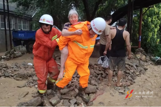 消防救援队员们正在救援遇险群众。