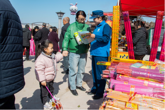 宣传小分队在马斗关庙会上为群众发放消防手册
