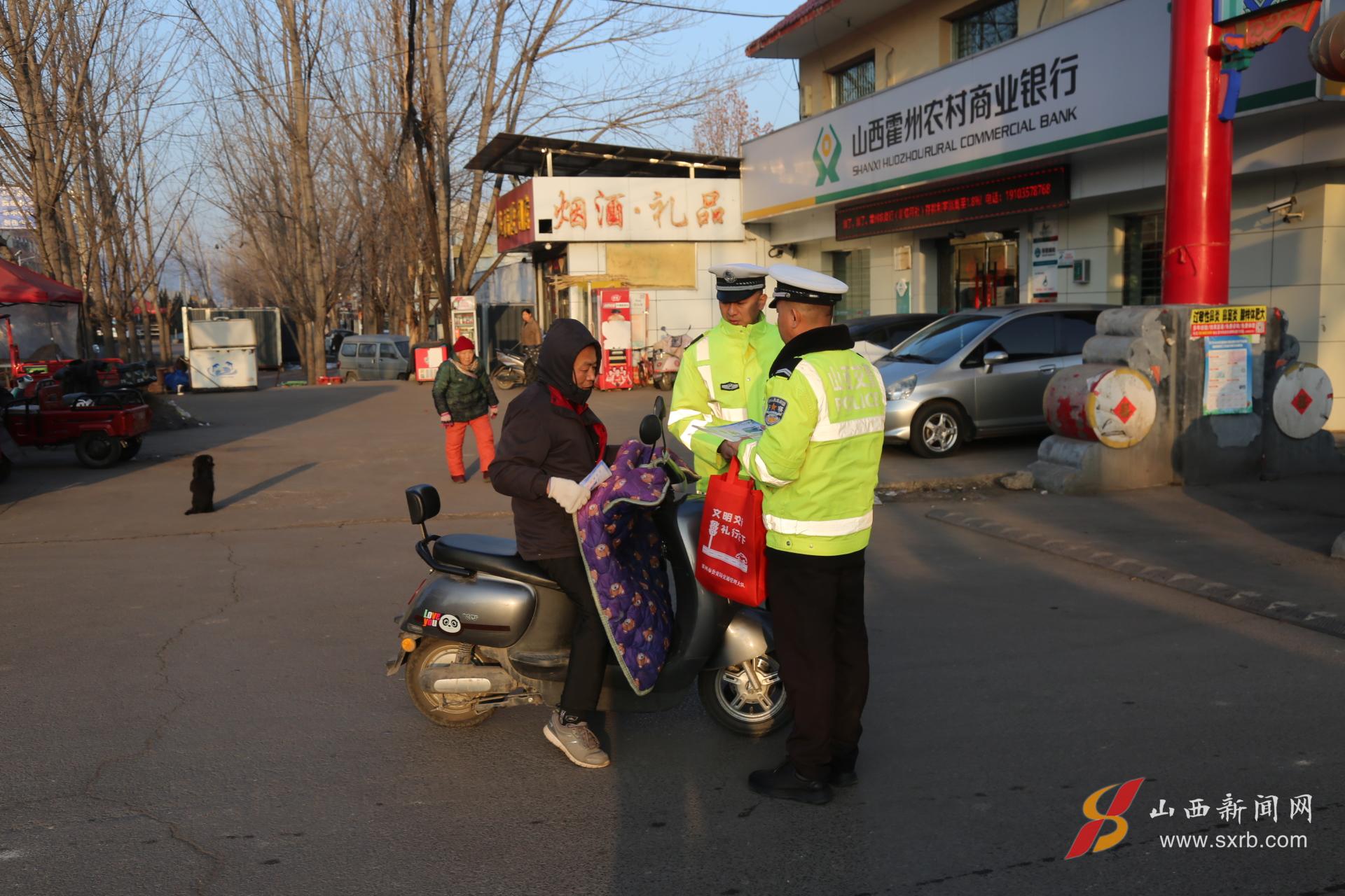 为进一步提升广大群众交通安全意识,强化源头宣传引导,织密农村道路交通事故防控网,有效预防和减少交通事故发生。1月7日,霍州市公安局交管大队二中队、综合科民警走进辖区退沙村开展交通安全宣传活动,向群众普及交通安全知识,筑牢农村道路交通安全防线。