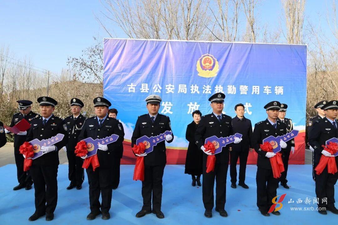 警车发放仪式上,李晶等县领导授车钥匙,标志着新警车正式投入使用。领车代表表态将忠诚履职,不负重托。警车出征,展现了古县公安的威武形象。同时,城镇小学学生代表向护学岗民辅警献上锦旗,表达感激。