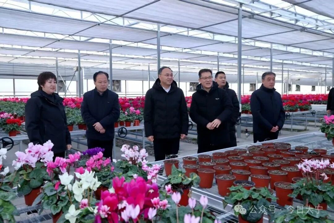 1月13日,大宁县委书记翟纪亭深入现代农业花卉双创示范园区,调研花卉产业发展,实地了解隆泰双创农林科技有限公司、山西盛世兰花生物科技有限公司生产经营状况。他强调,要全面贯彻落实中央、省委、市委、县委经济工作会议部署要求,有力有序盘活存量资源,进一步优化服务保障和要素供给,全力推动企业增效、群众增收,做优做强花卉产业,为县域经济高质量发展强基赋能。副县长张鹏华,县政协副主席、曲峨镇党委书记李建中参加调研。