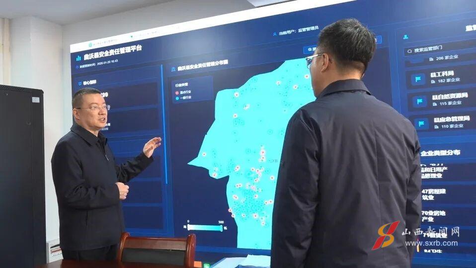 在县安委办,吴滨详细了解曲沃县安全责任管理平台建设情况,并现场查看平台运行管理,了解平台的功能架构、运行模式以及在安全责任落实方面的创新举措。
