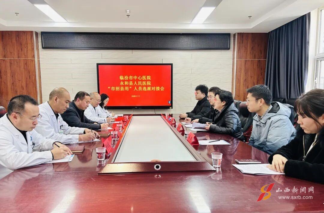 1月26日,临汾市中心医院在永和县医疗集团进行“市招县用”人员专项对接。临汾市中心医院副院长张艳明,永和县卫生健康局党组书记、局长田永峰,永和县医疗集团党委书记、院长李缠平及相关部门负责人参加会议。