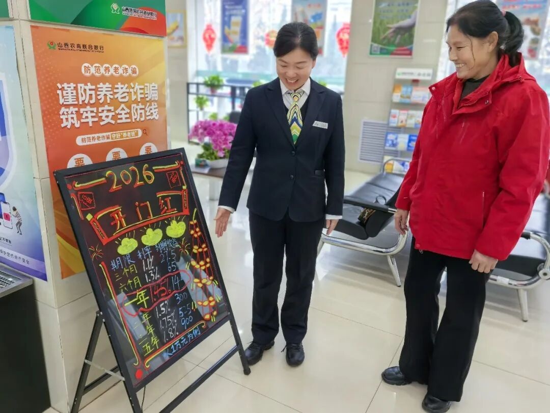 外拓走访,延伸服务“辐射圈”。面对旺季机遇,该支行科学调配人力资源,全员出击抢抓外拓“黄金期”。充分发挥区域门店密集、人流量大的优势,主动下沉服务重心。梳理形成重点客户清单,组织精干力量开展“送福拜年”专项营销行动,组织工作人员深入走访辖区大型超市、特色小吃城、临街商铺、农贸市场及新开盘小区等客群,在送去春联祝福的同时,提供贴心服务和适配产品。通过“面对面”“一对一”精准对接,深入了解客户经营状况和金融需求,针对性推介公积金贷、商户贷、晋享e付二维码等拳头产品,深挖市场潜力,实现精准获客与业务拓展双赢,截至目前,该支行走访机关单位、企业16家;拜访商户530余户,转化定期存款500余万元,营销晋享e付收款码21户,营销周边客群贷款32户,授信750余万元。