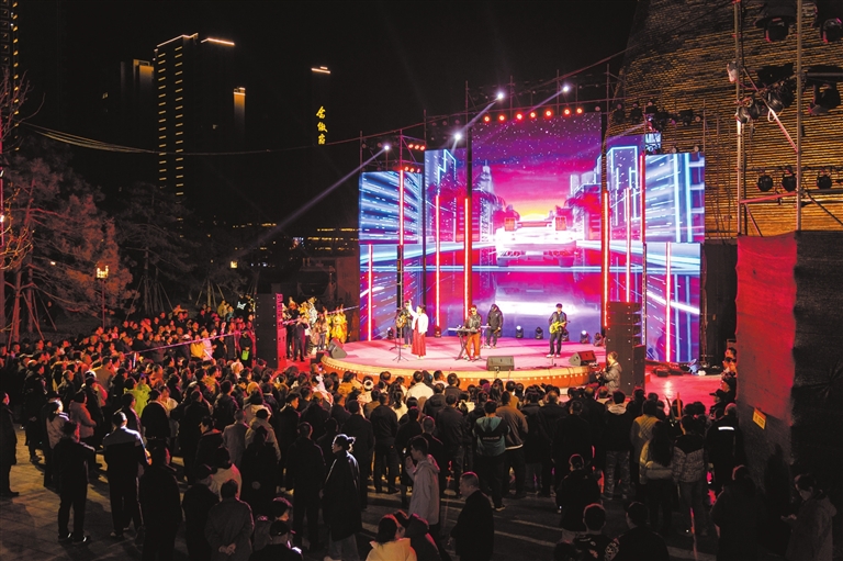 祈福夜回家过年·好“运”临汾活动古城墙专场音乐会激情唱响。本报记者闫锐鹏摄